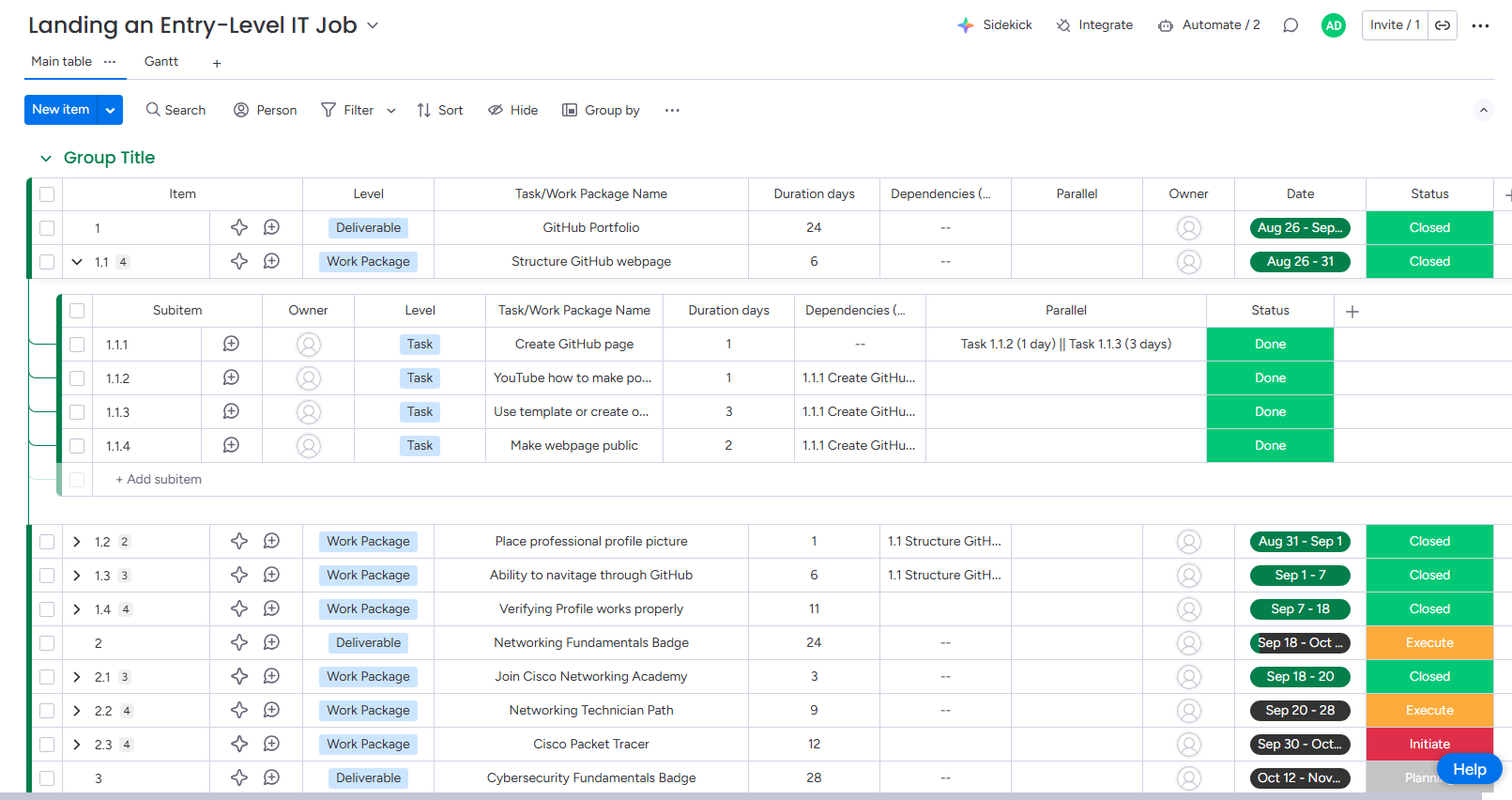 | 1 | Deliverable | GitHub Portfolio | 24 | — | |