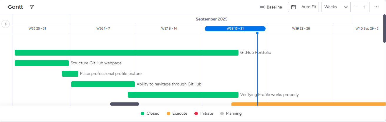 | GitHub Portfolio | Project Deliverable | Create and publish a personal GitHub portfolio site that is accessible, professional, and showcases coursework and certifications. | Reviewed by 2 peers confirming 10+ links work; loads < 3 seconds; responsive on mobile/desktop. | |
