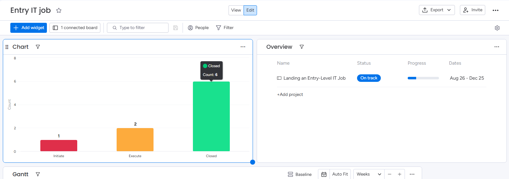 The three project management tools I chose to explore are Smartsheet, Asana, and Monday.com; the one I really enjoyed using—and will continue to use—is Monday.com. That was, coincidentally, a management tool a lot of the interviewees I spoke to talked about using. I can see why Monday would be a good project management tool to use, not just for predictive, but also for hybrid and agile.