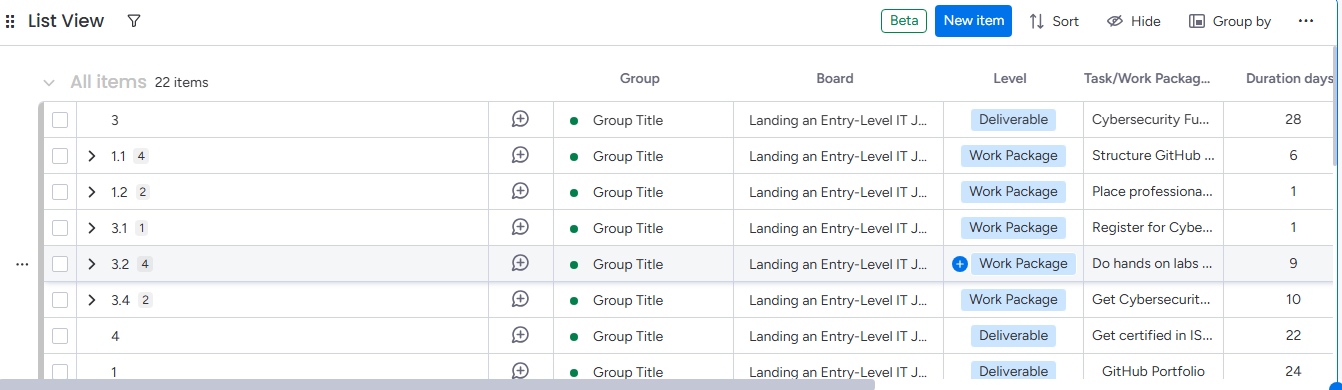 | 2.3 | Work Package | Cybersecurity Analyst Path | 10 | 2.1 | |